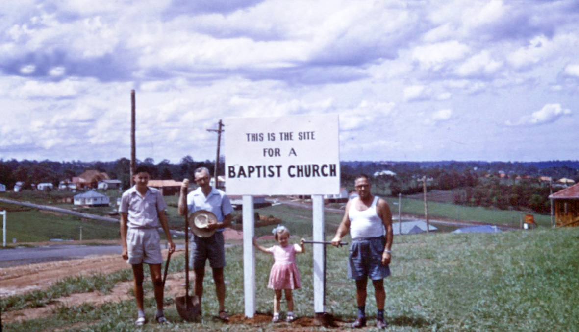 1. Erection of Church sign 1957 on land donated by Epping Baptist Church (Graham Henderson, Mervyn Henderson, Jillian Burleigh, Jack Parker).